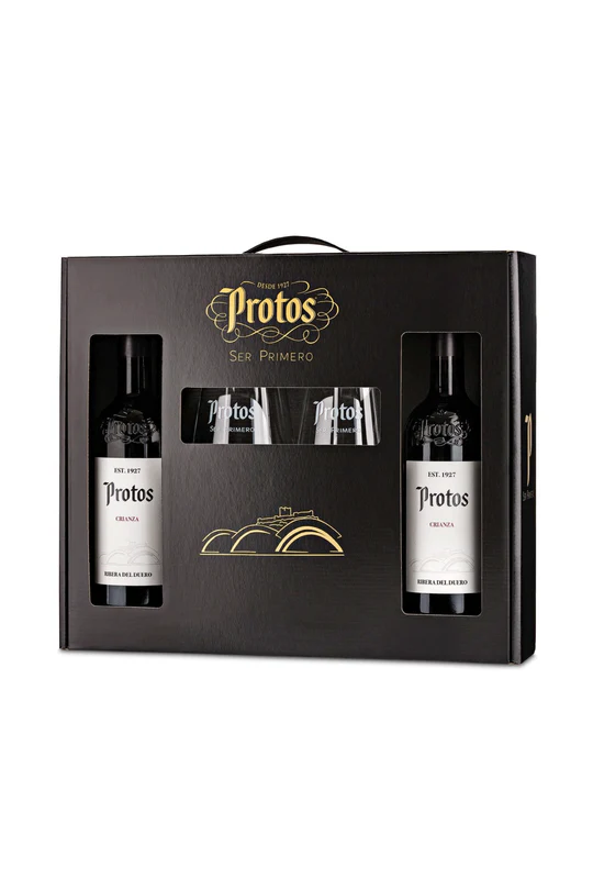 Estuche Protos Crianza 0.75L 2 Botellas + 2 Copas – Pack Premium Ribera del Duero