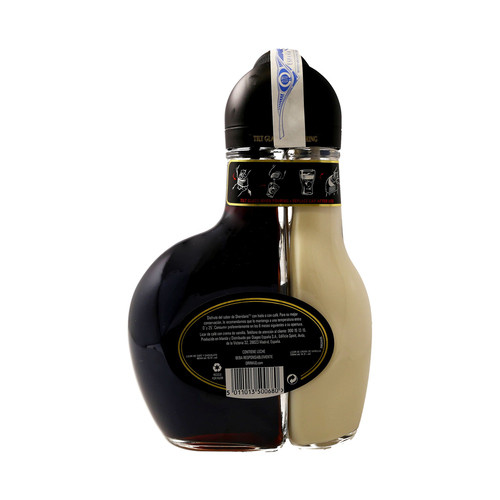 El diseño de la botella permite que, al inclinarla, ambos licores se viertan al mismo tiempo y en la proporción adecuada, creando de forma natural las distintivas capas en el vaso: la capa oscura de café y chocolate en la parte inferior, y la capa blanca y cremosa de vainilla flotando elegantemente en la parte superior.